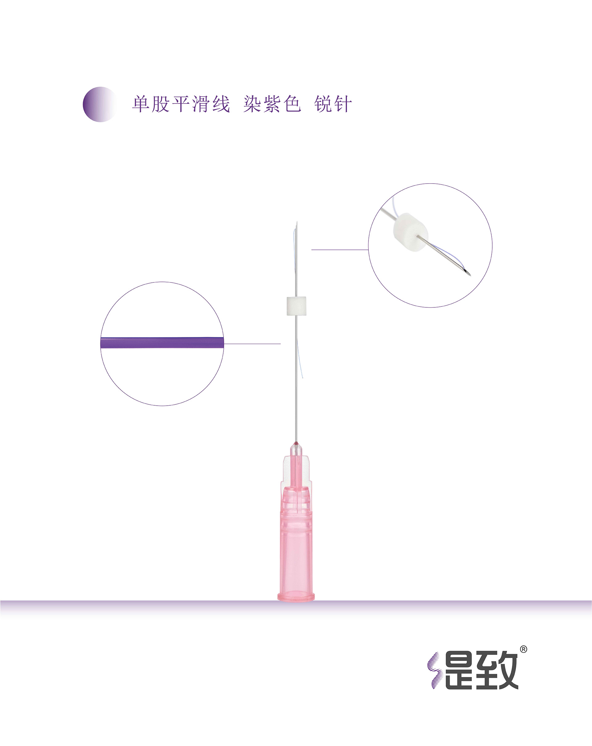 单股平滑线 染紫色 锐针